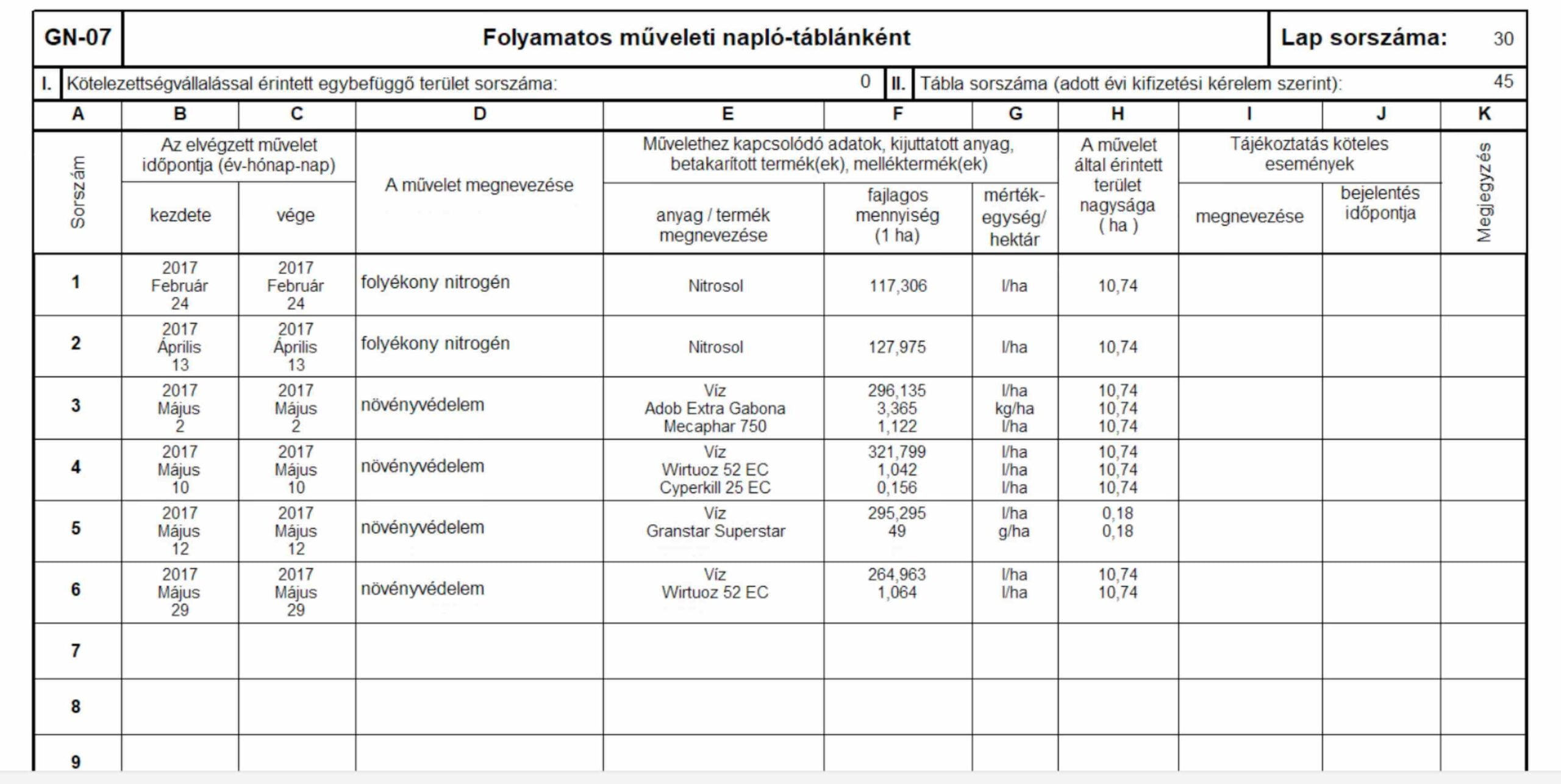 Átfogó módon segítjük a gazdálkodókat, hiszen ugyanilyen egyszerűen készíthetik el szoftverünk segítségével a Permetezési Naplót és a Nitrátjelentést is.