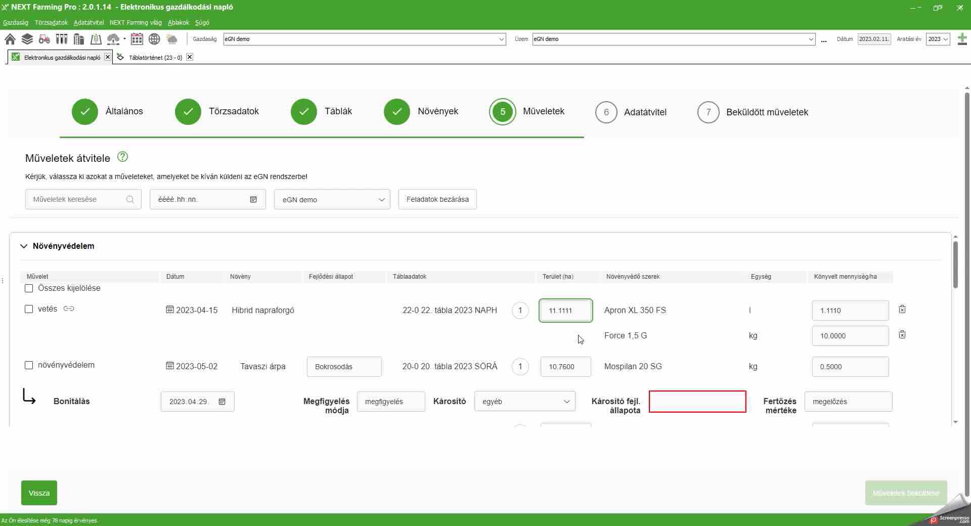 NEXT Farming PRO szoftver kompatibilis a NÉBIH rendszerével, így kiváltja a NÉBIH felületén történő adatrögzítést. A program a felhasználó által végig ellenőrizhető és áttekinthető módon küldi be az eGN adatokat. Természetesen az aktuális Excel alapú Gazdálkodási napló továbbra is kitölthető a programból, így egy esetleges helyszíni ellenőrzésnél az is bemutatható.