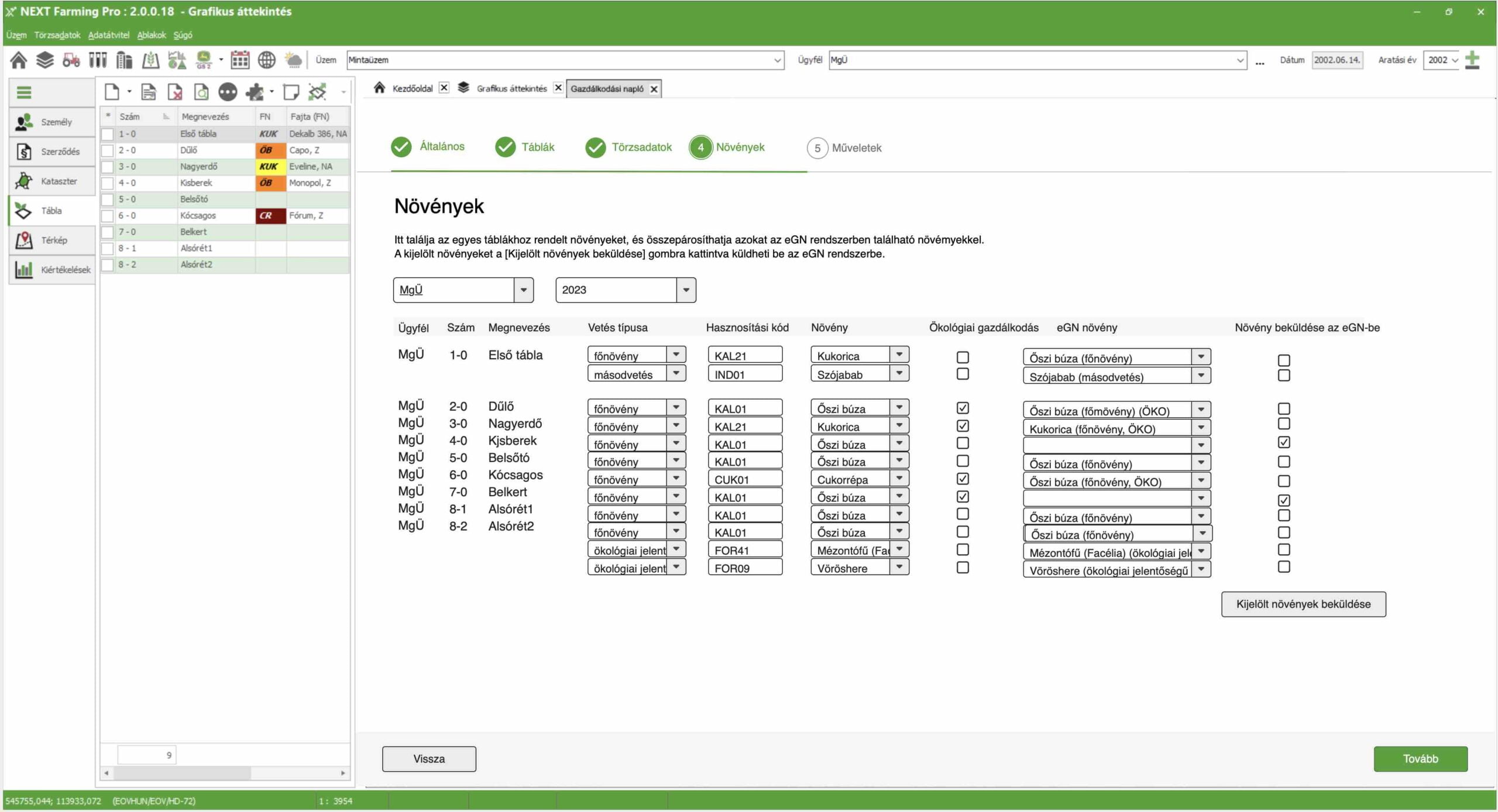 Ha szoftverünket használja, akkor az alábbi növénytermesztési folyamatokhoz elengedhetetlen funkciókat és adatokat bármikor elérheti és megjelenítheti: